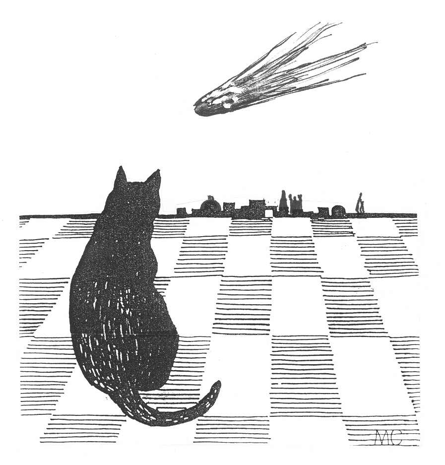 The winner of the competition for the Springer book on 'Observing Comets' by Nick James and Gerald North was Margaret Cullen for her drawing entitled “Watching Hale-Bopp”.  Runners up were Malcolm Gibb with a photograph of Ikeya-Zhang above the mountains near Callendar and Sidney Hurring with a white on black sketch of the rotational shells seen in the coma of Hale-Bopp.