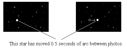 is half the distance moved by the star between photos. Therefore