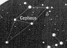 Cepheid Variables are very large, luminous, yellow stars. They change in brightness very regularly with periods of 1 to 70 days between peaks. The stars are called Cepheids after the first star of this type to be discovered - Delta Cephei. This is a reasonably bright star in the constellation of Cepheus (Figure 1). As the light curve of Delta Cephei shows (Figure 2) it has a period of about 5 days.