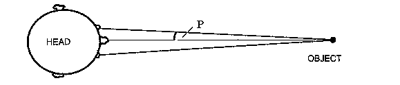 Your brain instinctively determines the object's distance from the slight change in direction (measured by the angle - P). This method of measuring distances is called PARALLAX.