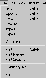 NOTE: Export can also be accessed by clicking the right hand mouse button in the Image window to bring up the Zoom in/out option box or by clicking on File in the main menu and selecting Export...