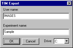 NOTE: The TIM option is used to export image data in a form that can be read in by Life Science Resources Merlin software (a software package for High Speed Fluorescence Ratio Imaging). When a sequence is exported in this format, the images are stored one per file in a directory name based on a user name, experiment and a selected hard disk drive.
