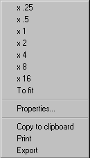 To return to the original image format click the right hand mouse button and choose x1 from the Zoom in/out menu. CLick outsode of the option box to close it and return to the main window.